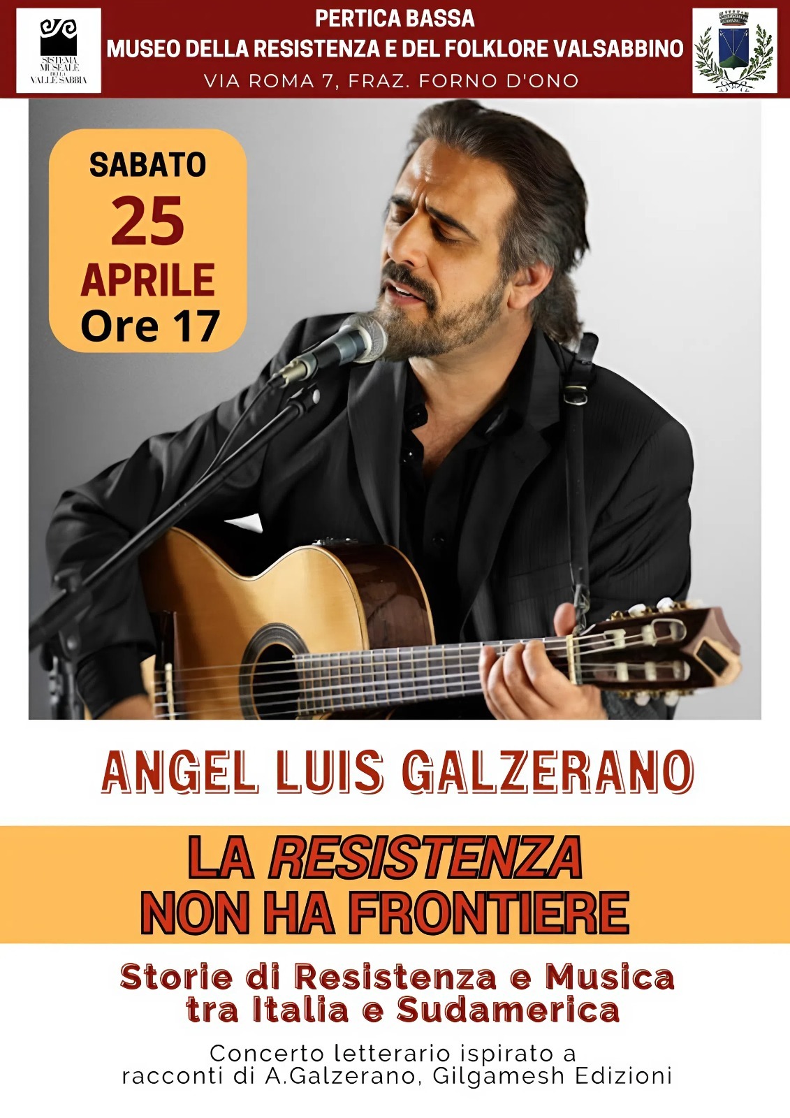Museo della Resistenza e del Folklore Valsabbino Via Roma 7, Forno d'OnoStorie di Resistenza e Musica tra Italia e Sudamerica Concerto letterario ispirato a racconti di Angel Luis Galzerano, Gilgamesh Edizioni Sabato 25 aprile alle 17:00 ...